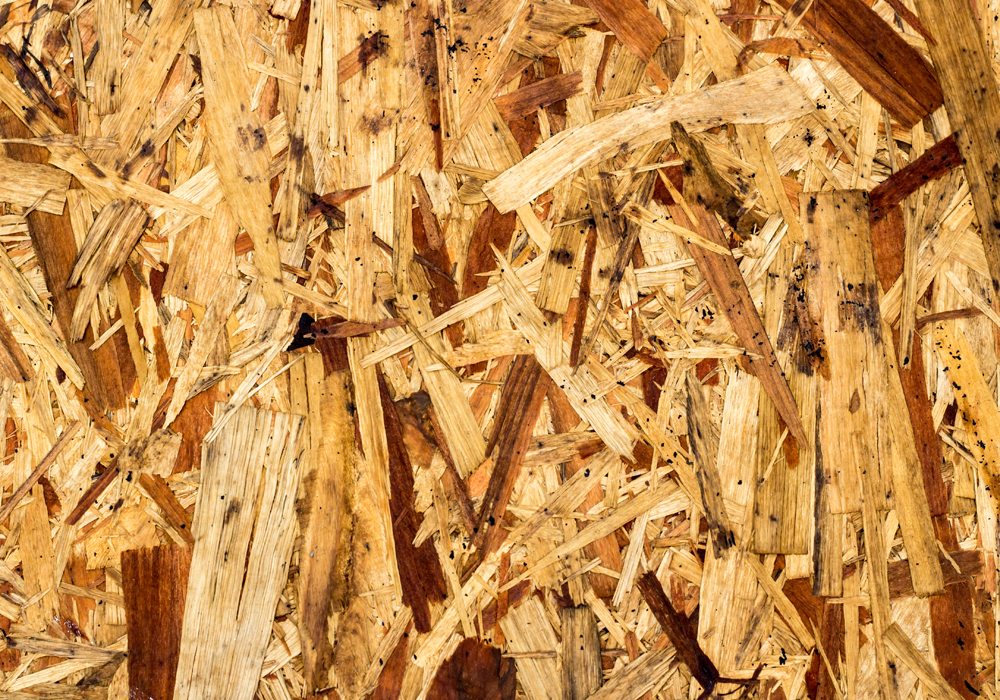 – Strips of natural wood fiber are laminated to form a dimensional product, rather than a flat sheet. Similar to Oriented Strand Board, it has a likelihood of permanent damage.