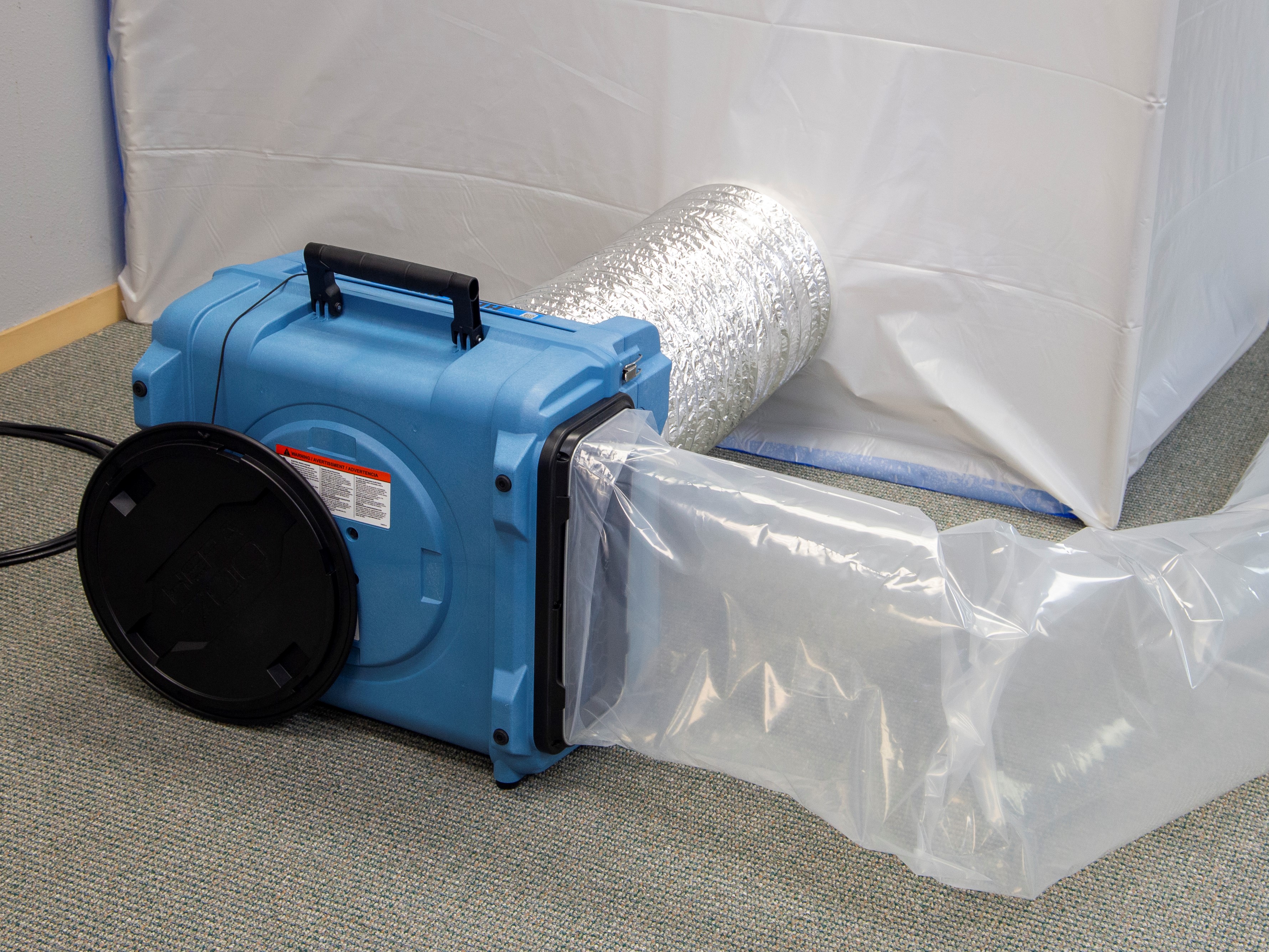 That’s why negative pressure air containments should only be created using an air scrubber like the Dri-Eaz HEPA 700. Independent testing shows that it exceeds HEPA, removing 99.99% of .1-.5 micron particles. The unit’s variable speed is also critical to maintain the correct level of negative air pressure and for the integrity of any containment, using the HEPA 700 ducting.