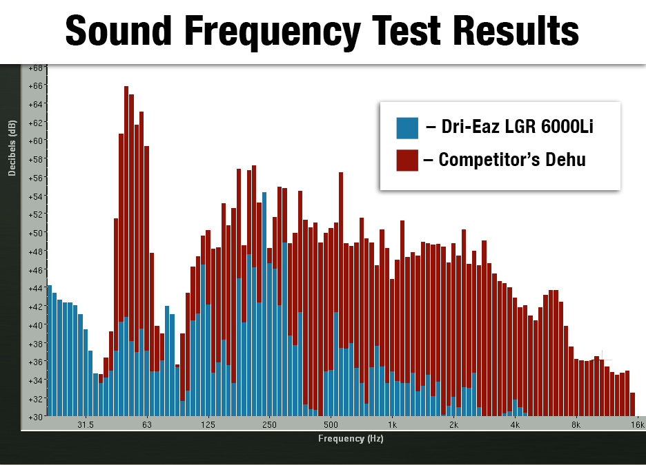 Even more critical is sound frequency, and the most annoying frequencies to the human ear range from 2000-4000 hertz (Hz). Our product engineers know that – and know what an issue loud equipment can be – so they designed the latest Dri-Eaz® equipment with that in mind.